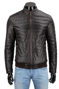 WOJ124aT - Brązowa kurtka bomberka męska skórzana DORJAN