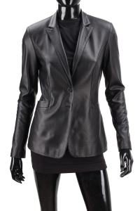 ŻAK450 - marynarka skórzana damska - czarny żakiet damski DORJAN