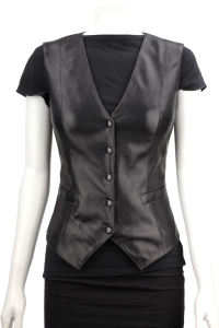 ZYT450 - klasyczna kamizelka skórzana damska z czarnej skóry DORJAN